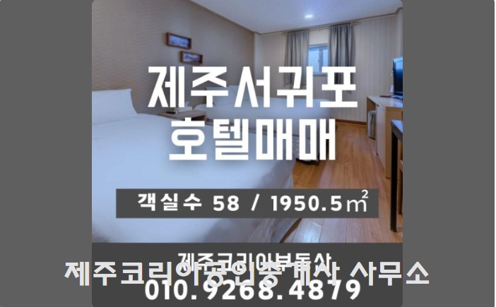 ▶ 房源编号: H401-01 房源名称: 西归浦七十里附近正在营业中的酒店出售 售价: 39亿韩元 ▶ 土地信息 土地面积: 1,262㎡ 用地性质: 一般商业区 建筑覆盖率: 52.6% 容积率: 144.48% ▶ 建筑信息 主要结构: 钢筋混凝土结构、砖混结构 主要用途: 3层住宿设施 ▶ 酒店内部面积 地下1层: 酒店 125.9㎡ 1层: 酒店 572.82㎡ 普通餐厅 91.05㎡ 2层: 酒店 551.11㎡ 3层: 酒店 346.28㎡ 酒店 201.6㎡ 顶层: 酒店 61.75㎡ ▶ 其他信息 违章建筑标注: 1层存在约8.6㎡的未经许可增建部分 目前状态: 正在出租并正常营业中